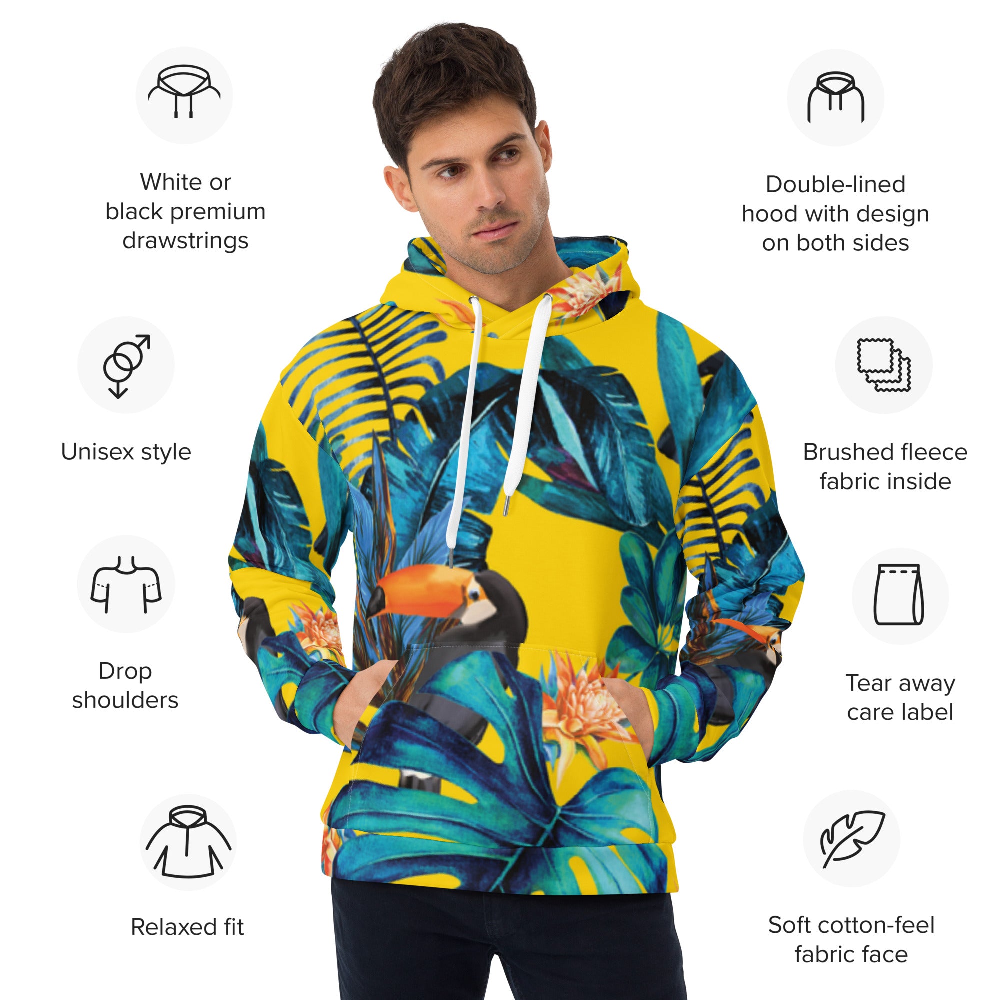 Šim ērtajam unisex kapucim ir mīksta ārpuse ar košu apdruku un vēl mīkstāka matēta vilna iekšpusē. Hūdijai ir nepiespiests piegriezums, un tas ir lieliski piemērots ietīšanai vēsā vakarā.